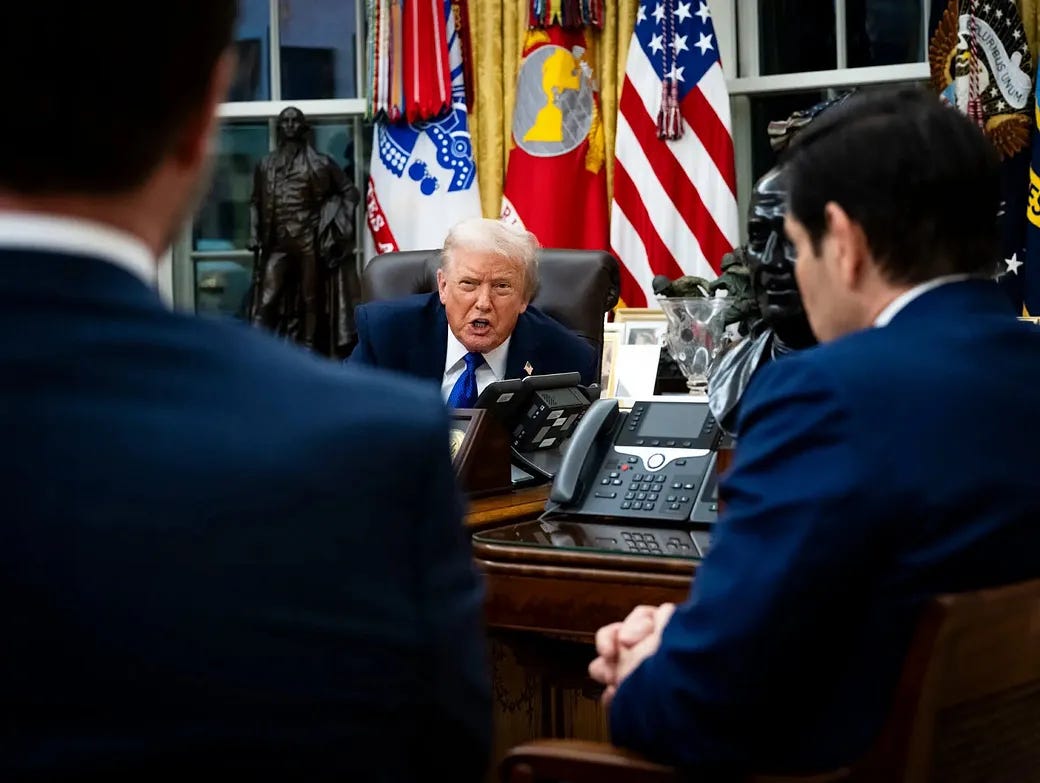 Are we fighting Nicolás Maduro’s authoritarianism? Nope: Maduro’s vice president is still in charge and Trump doesn’t like the opposition leader because she claimed the Nobel Peace prize he coveted.